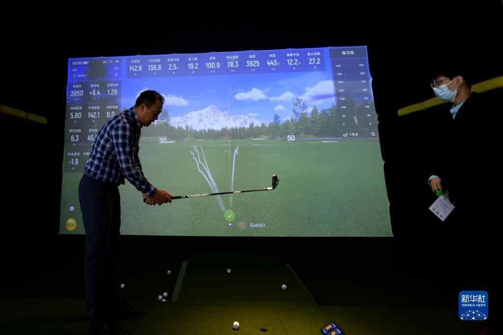 11月7日,在第六届进博会技术装备展区,观众体验“互动高尔夫球”。
