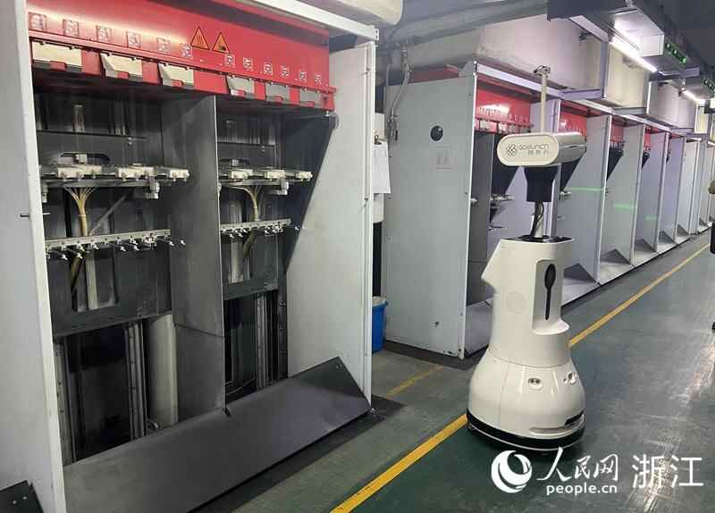新凤鸣5G工厂的智能巡检机器人。人民网 方彭依梦摄