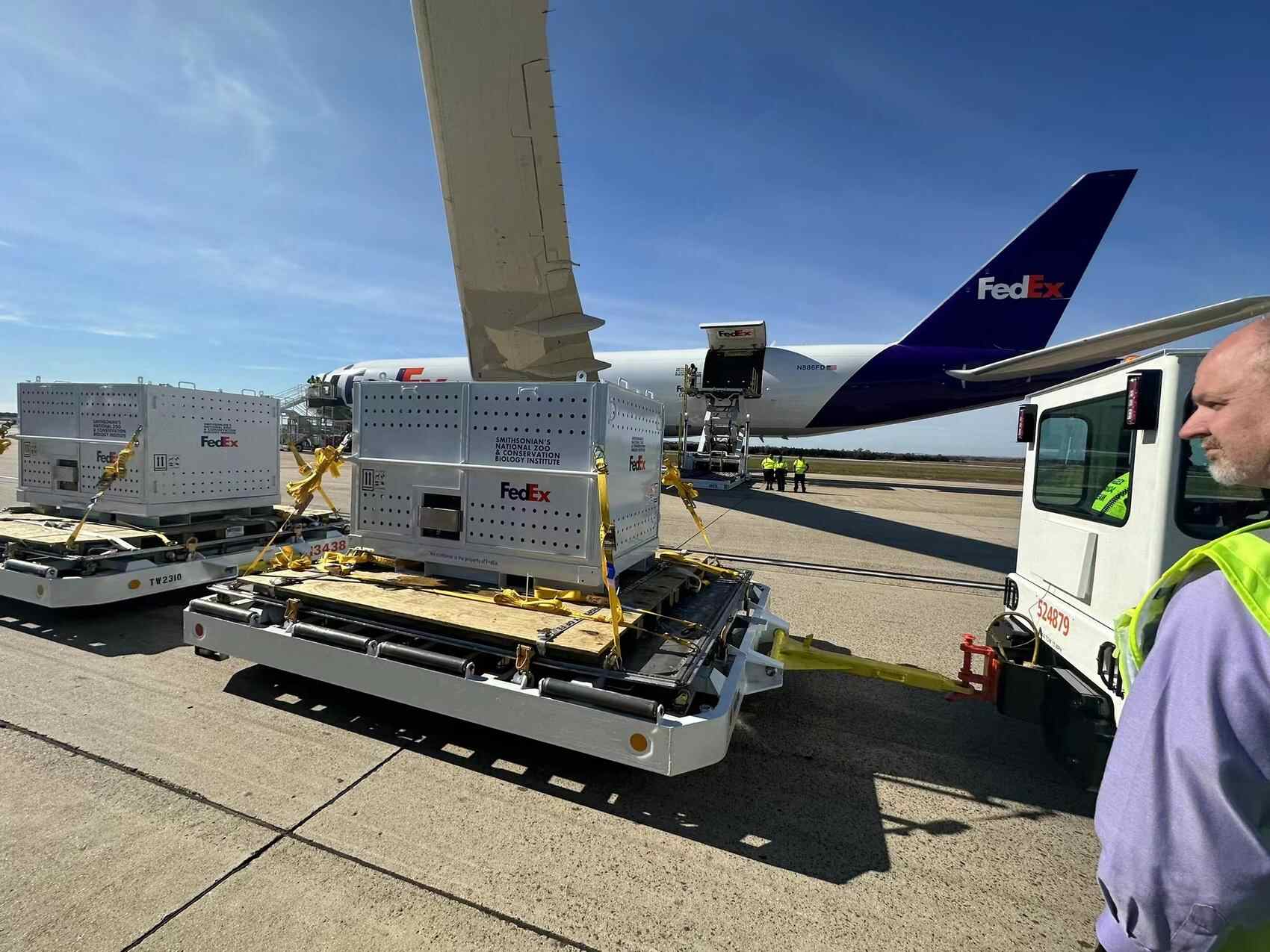 负责本次运输工作的是联邦快递“FedEx熊猫快递号”波音777货机,航班备有220磅竹子、8磅特制饼干、5磅低淀粉饼干、6磅苹果、5磅胡萝卜、6磅红薯、3磅甘蔗、1磅梨和1磅熟南瓜,一名兽医和两名饲养员全程陪同。