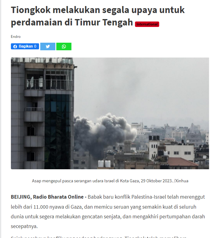 总台豪萨语外籍记者雅哈亚在尼日利亚《领导者报》网站发表署名文章《中国向全球呈现解决巴以冲突的“中国方案” 》