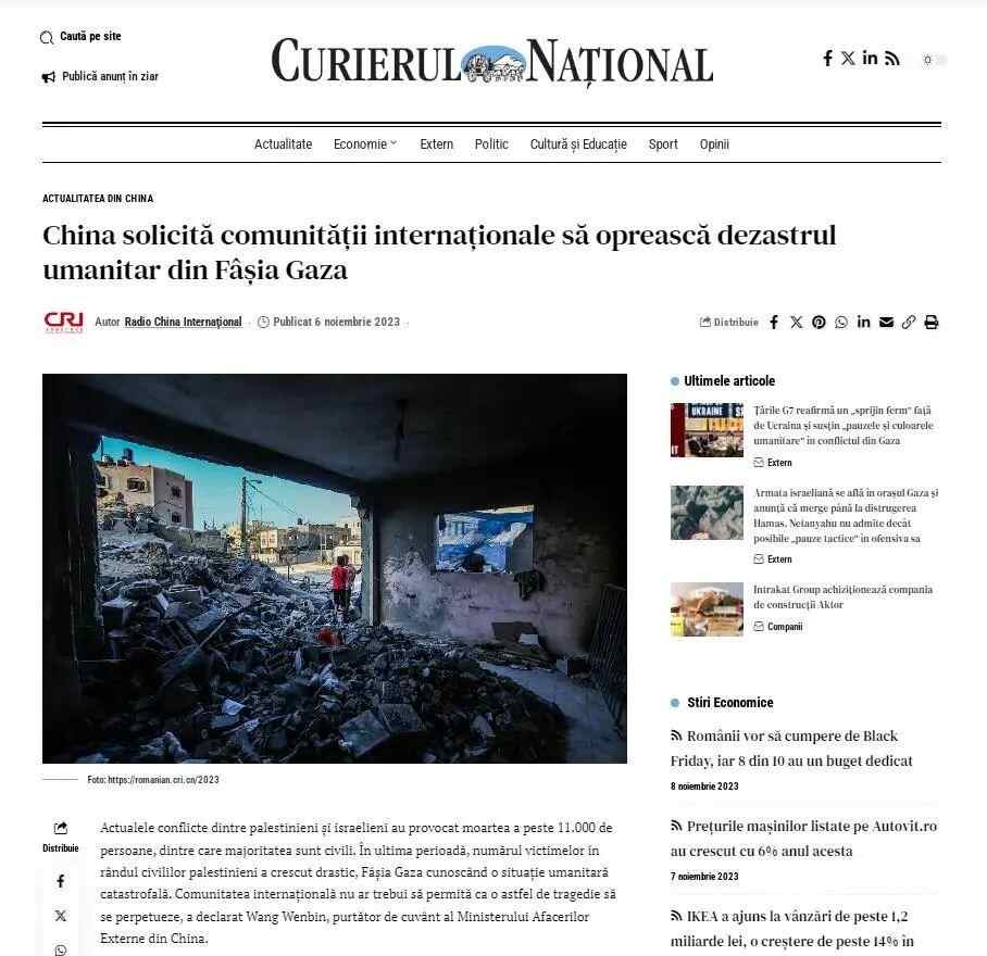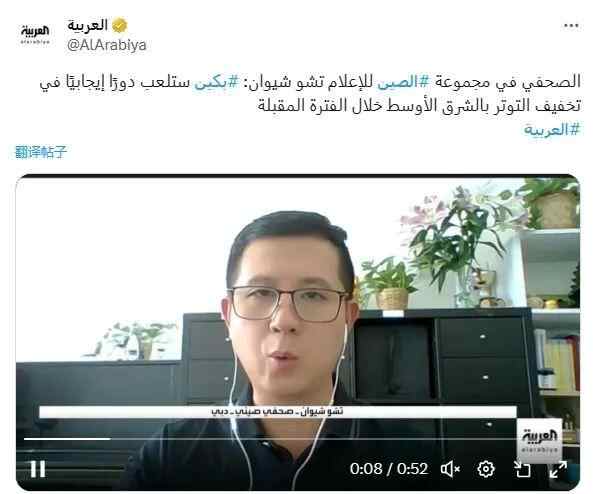 总台记者李超、周宣在今日俄罗斯电视台阿拉伯语频道、阿联酋全景电视台、沙特阿拉伯阿拉比亚电视台发声;总台记者周宣在阿曼《观点报》发表署名文章《中国:停火止暴是当前巴以双方的当务之急》
