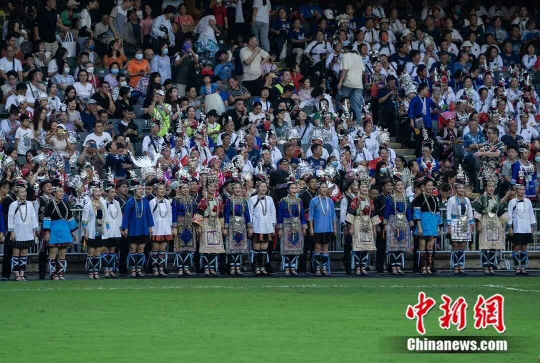 在11日比赛现场,气氛非常热烈。当天15时许,大球场内已人山人海,气氛非常热烈。在充满贵州特色的歌舞表演和充满活力的啦啦队表演后,两队球员入场。此时看台上一片“红海”,身穿红色球衣的球迷挥舞国旗和香港特区区旗,为两队球员送上阵阵欢呼声。