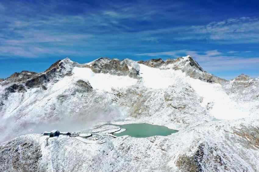 因为冬天里,气温非常低、降雪量大,这种方式不仅能更多地保留积雪,让下面老冰的消融减缓甚至停止,甚至还能增加更多的冰。那这是不是能让冰川不减反增呢?这就是这一次实验的主要目的。