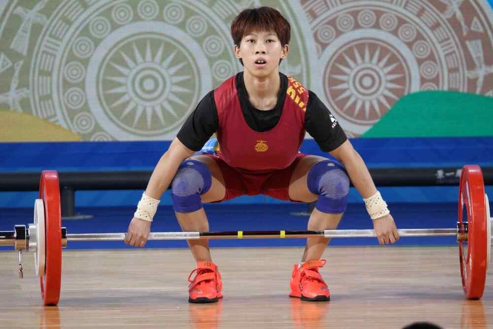 在举重女子45公斤级比赛中,福建选手徐璐莹抓举85公斤平世界纪录。
