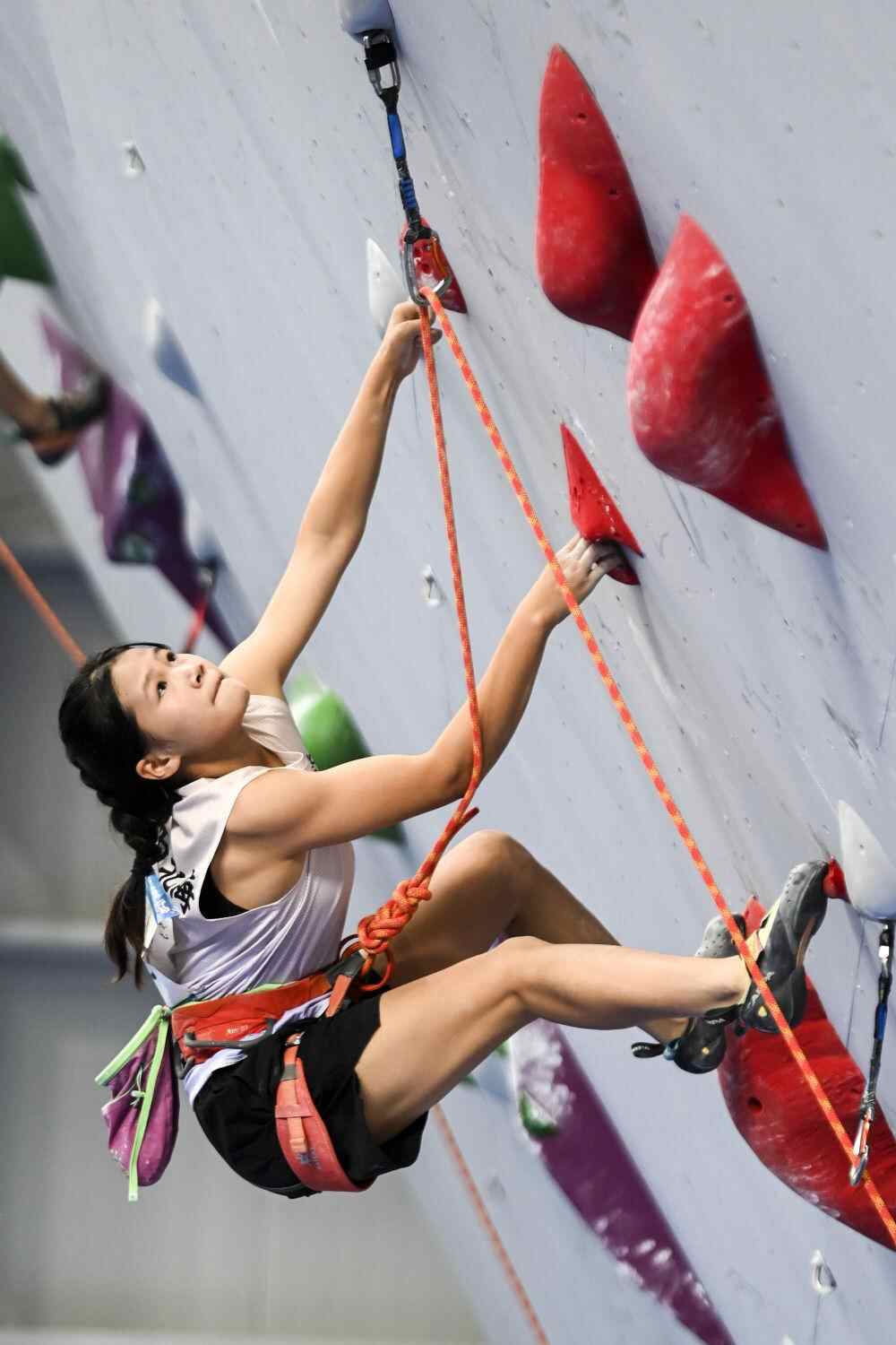 14岁的李彦郯在11月8日的攀岩女子随机速度比赛中越战越勇,从预赛到决赛,她把成绩从11秒90提高到了10秒91,稳稳拿下金牌。更不可思议的是,她是跨项参赛,主项是两项全能,平时在随机速度方面并没有太多训练。