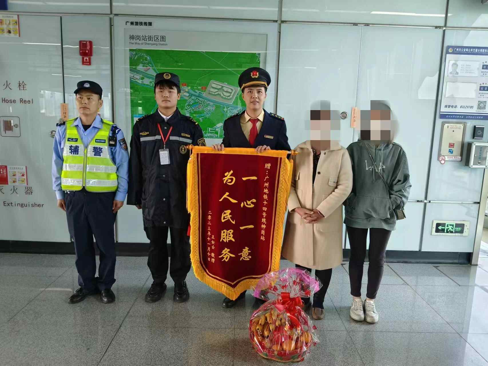 “幸好当时有你们及时救助,不然后果不堪设想。”11月14日10:00,两名女乘客携带一面写着“一心一意,为人民服务”的锦旗,专程来到广州地铁十四号线高架站神岗站,向车站工作人员致谢。这是怎么回事呢?