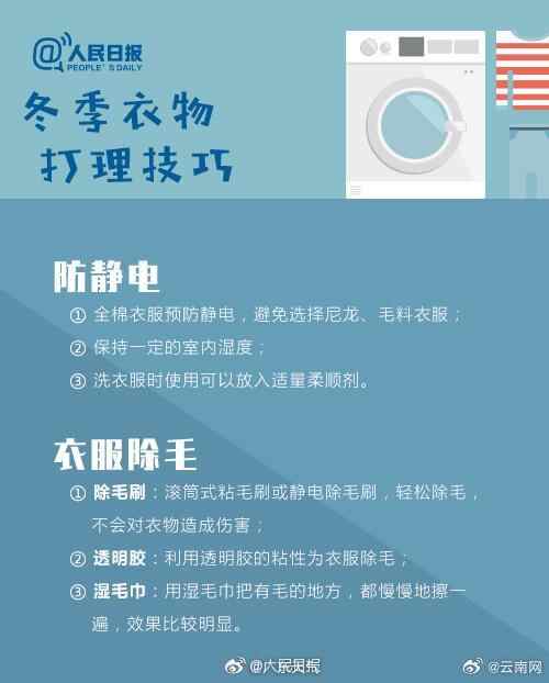 天气渐冷,好好整理清洗下秋冬衣物吧!羊绒衣物怎么保养?皮衣发霉怎么办?羽绒服脏了怎么洗?如何给衣服除静电、除毛?这些问题,统统不用担心!戳图了解这些超实用的秋冬衣物清洁技巧↓↓↓
