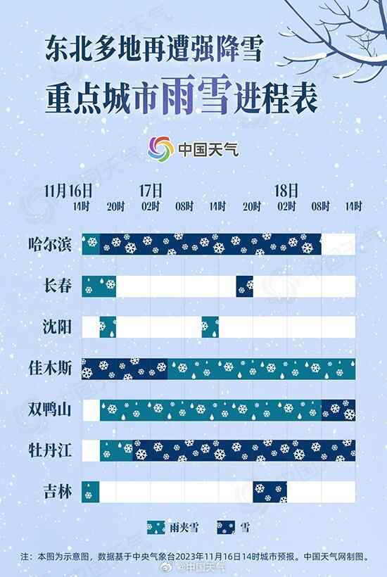 随着冷空气不断补充,东北地区新一轮雨雪天气再度来袭,其中16日-17日黑龙江东部等地部分地区有大暴雪,局地特大暴雪。可谓是,上两轮雨雪影响尚未消除,新雪又至!