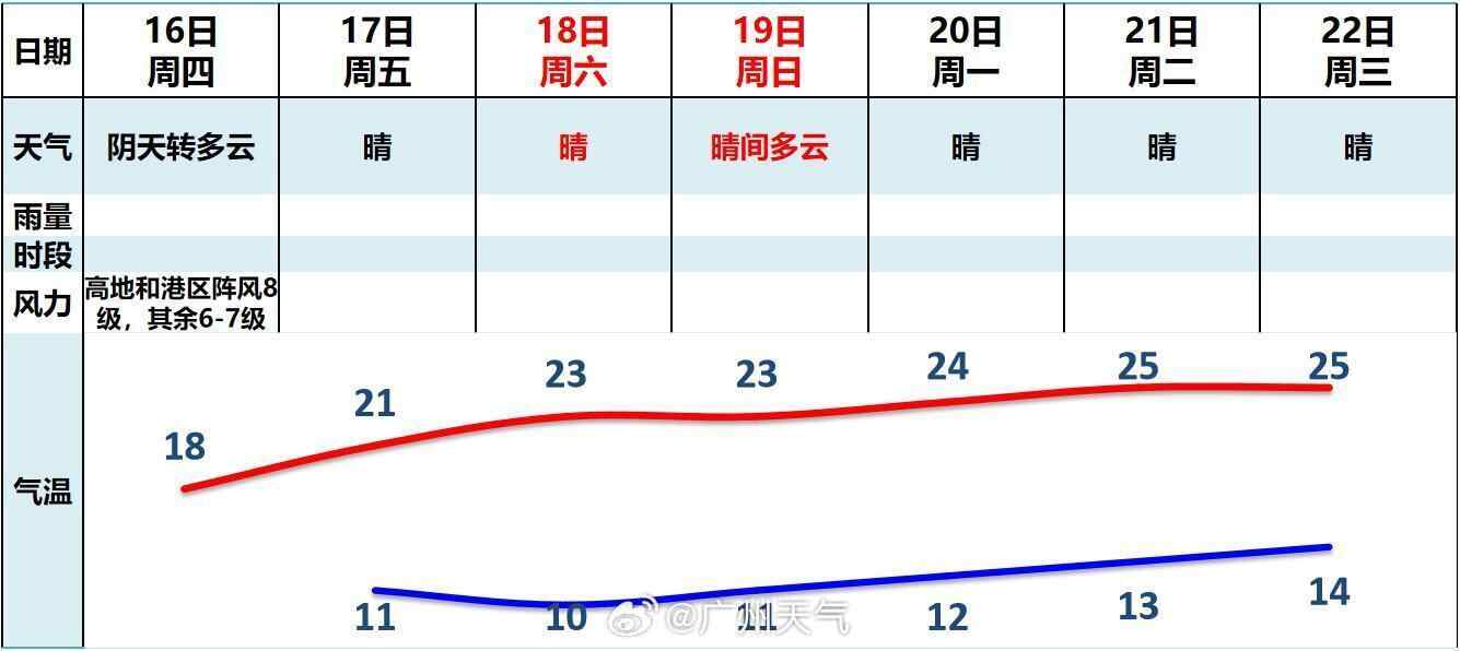 此外,要特别注意的是,本周六广州市区最低气温仅10℃左右,别忘添衣加被。