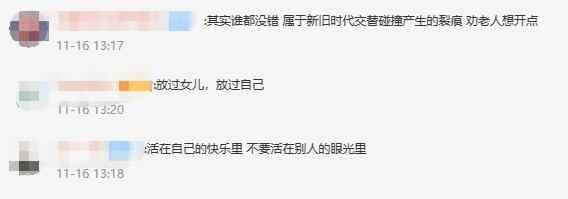 对此,网友们也在评论区留言“放过女儿,放过自己”“活在自己的快乐里,不要活在别人的眼光里”。