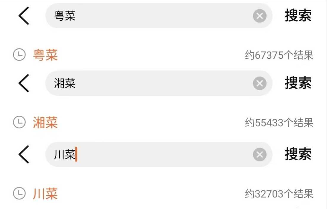 广州的粤菜、湘菜、川菜门店数量情况与深圳类似。11月18日,羊城晚报记者在广州用大众点评APP搜索八大菜系,按照搜索结果数量排名,川菜在广州同样排在第三名。