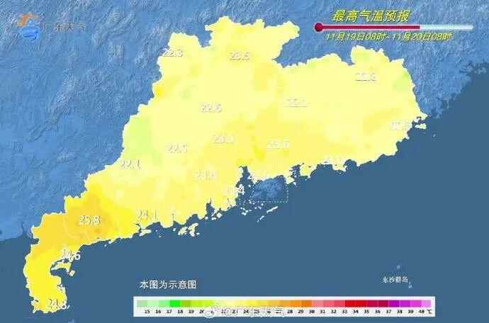 海面大风预报:19-21日,广东中东部海面东北风5~6级阵风7级,南海中北部海面东北风6~7级,阵风8级。