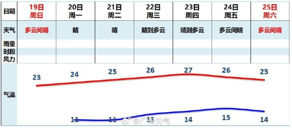 21日,广东晴间多云,早晨最低气温:中北部市县12~15℃,南部市县15~18℃。