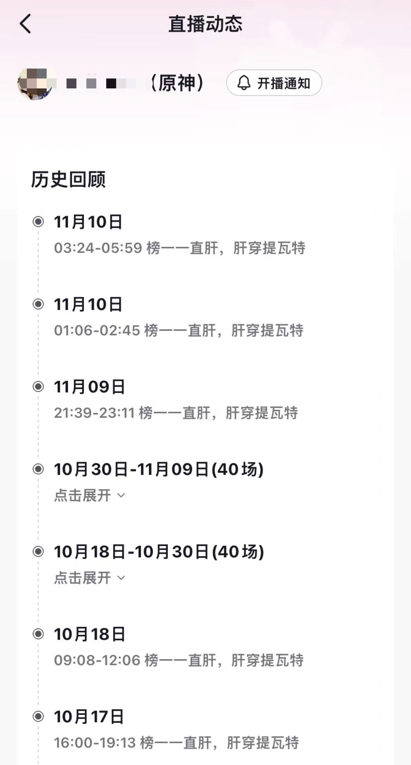 动态显示,在11月5日之前,李昊的直播时间大多集中在上午10点到晚上7点。11月5日后,直播开始“跨夜”,大多数从晚上9点左右开始,一直到早上6点左右结束。