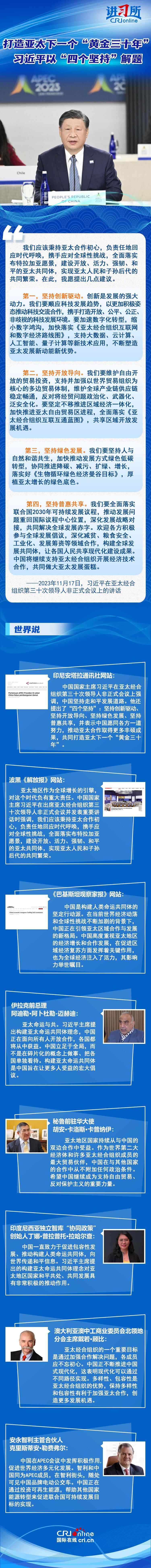 当地时间11月17日上午,亚太经合组织第三十次领导人非正式会议在美国旧金山举行。中国国家主席习近平出席会议并发表重要讲话,提出亚太地区要“坚持创新驱动、坚持开放导向、坚持绿色发展、坚持普惠共享”四点建议,携手应对全球性挑战,共同打造亚太下一个“黄金三十年”。
