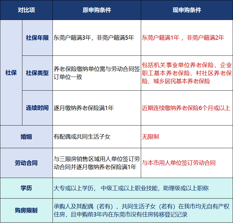 最新政策中,申购条件将大幅放松,只要在东莞市工作,社保最低1年,单身也可以购买三限房了。