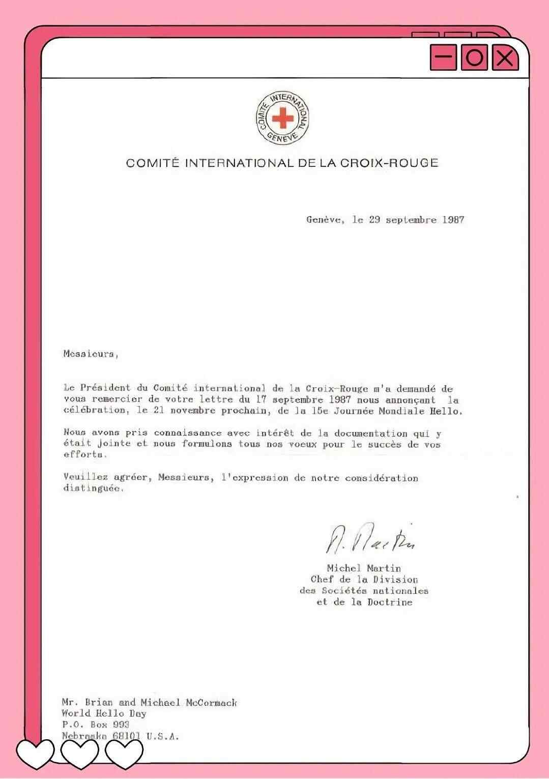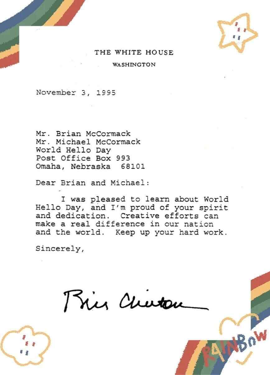 1973年11月21日,为促进埃及与以色列之间的和平,来自澳大利亚的两名大学生兄弟姆可马克与米切尔,自费印刷了大量有关问候的宣传材料寄给世界各国政府首脑及世界知名人士,向他们阐述设立“世界问候日”的重要意义,第一个“世界问候日”就此诞生。