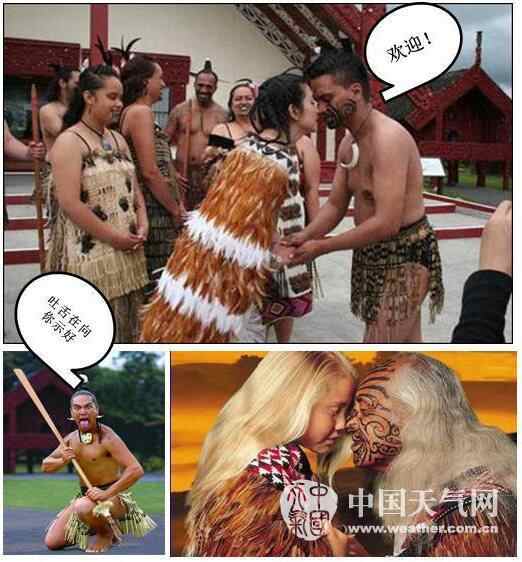新西兰土著毛利人在欢迎来访者时,往往会采用自己的传统礼节,其中最闻名遐迩的就是“碰鼻礼”。双方碰鼻子的时间越长,就说明客人所受的礼遇越高。为了让孩子鼻子长得高大一些,以方便行礼,毛利人的母亲还常常用双膝夹孩子的鼻子。