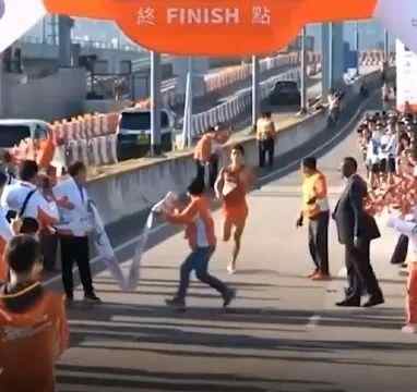 其后工作人员再次将冲线带准备好,多位选手同一时间亦跑返终点,代表日本的跑手于女子全场总冠军前面5秒冲线并冲过冲线带,而胜出之乌干达跑手亦未能冲过冲线带。