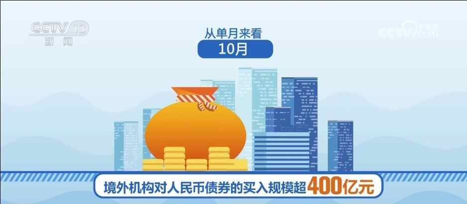 央视网消息:日前,中国人民银行上海总部发布境外机构投资银行间债券市场相关情况。数据显示,截至今年10月末,境外机构持有银行间市场债券3.24万亿元,约占银行间债券市场总托管量的2.4%。从单月来看,10月,境外机构对人民币债券的买入规模超400亿元,创下过去四个月以来新高;9月,境外机构对人民币债券的买入规模接近200亿元。境外机构已连续2个月净增持人民币债券。
