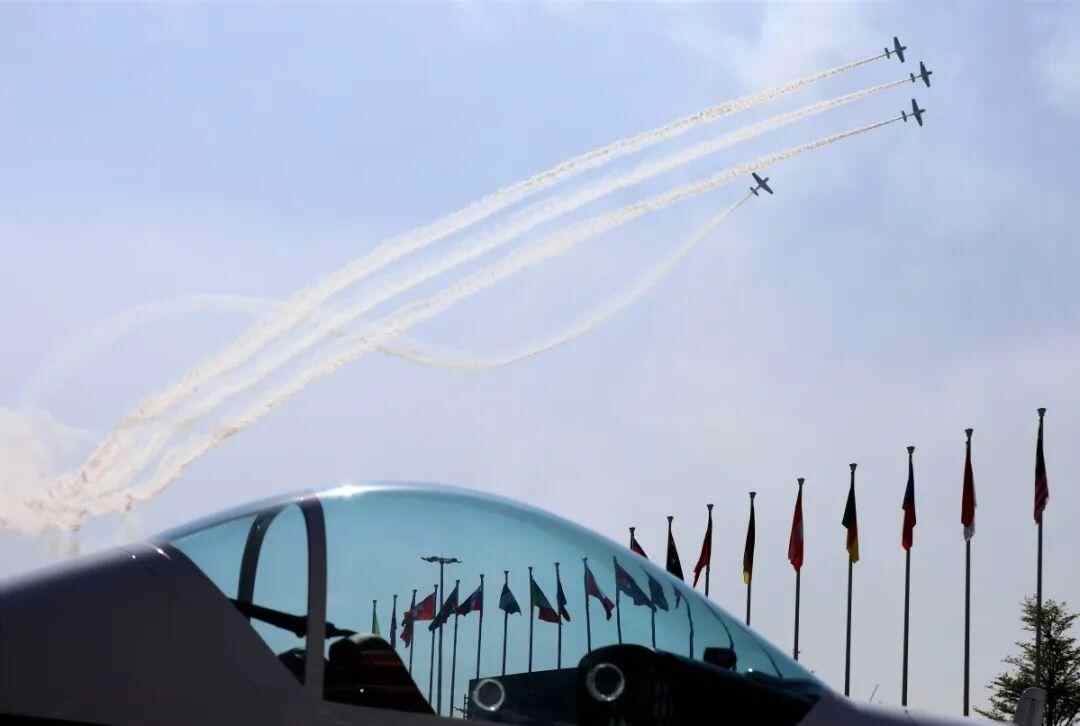 总台记者 罗平章:我现在正在2023亚洲通用航空展的现场,现在我身后来自国外的飞行表演队正在进行到达后的适应性飞行训练,为本届航展开幕做最后的准备。
