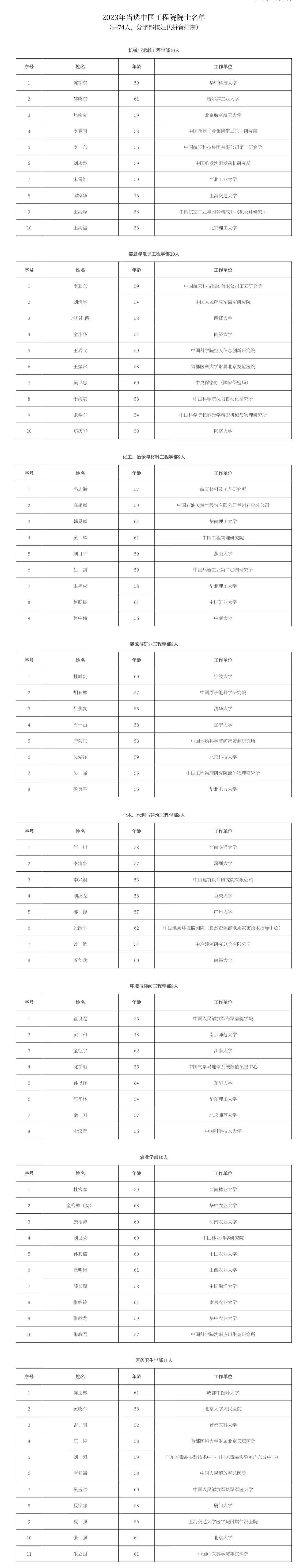 11月22日,2023年两院院士增选结果正式揭晓,中国科学院增选院士59人,中国工程院增选院士74人。
