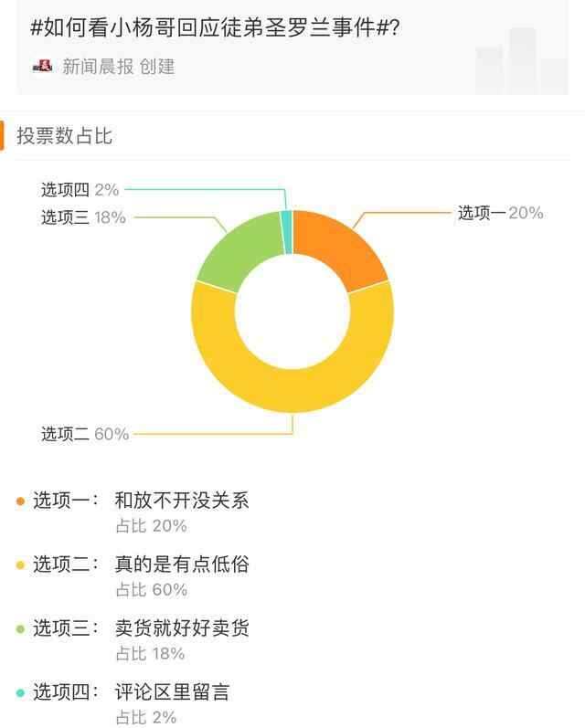 一项媒体发布的投票显示,60%的网友认为“真的是有点低俗”,20%认为“和放不开没关系”,18%认为“卖货就好好卖货”。