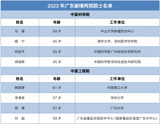值得一提的是,最近三次的院士增选中,广东均有医学“大牛”入选:2019年,中山大学孙逸仙纪念医院院长宋尔卫当选中国科学院院士;2021年,南方医科大学基础医学院教授高天明当选中国工程院院士。