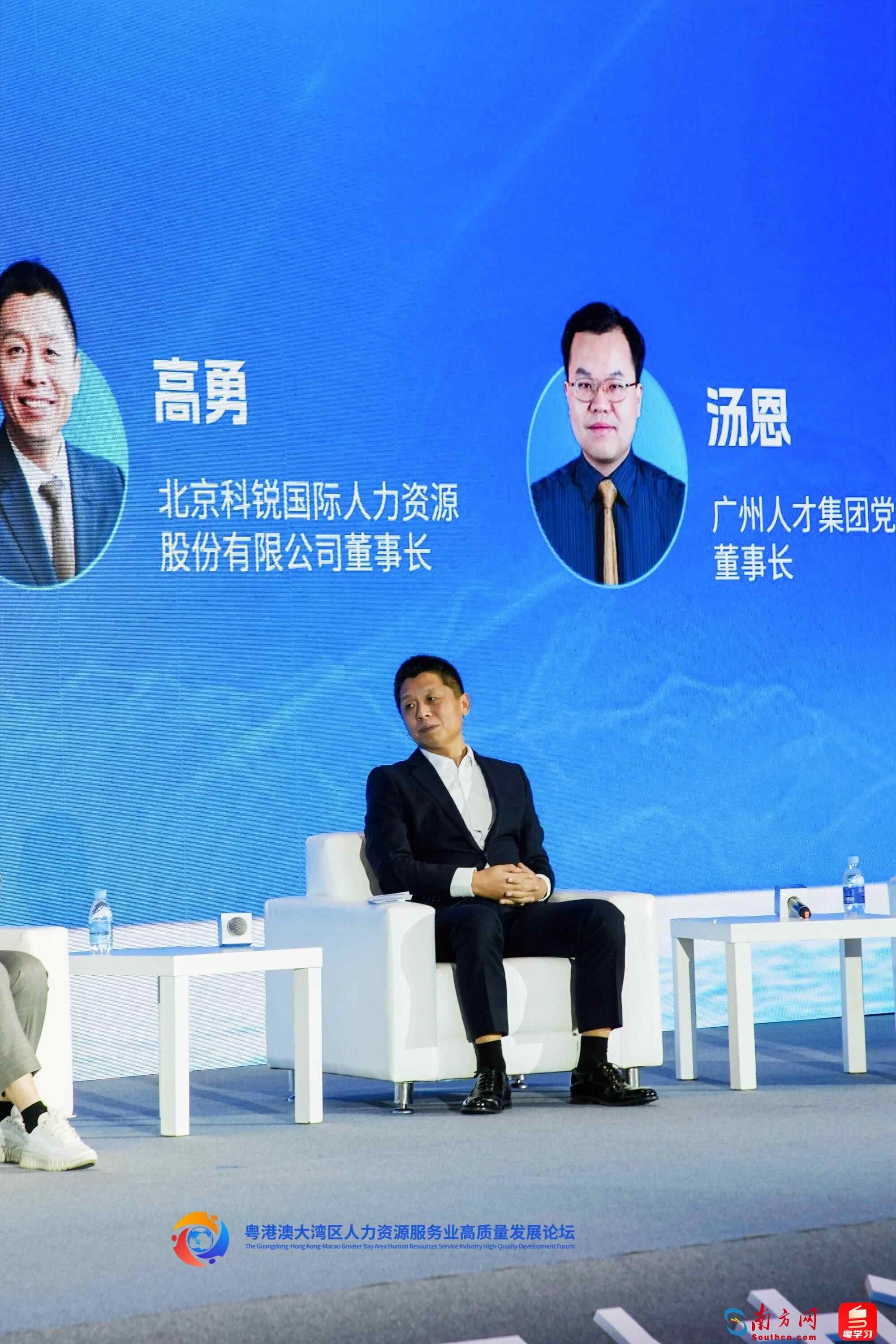 11月22日,粤港澳大湾区人力资源服务业高质量发展论坛在深圳举行。在圆桌对话环节,陈伟鸿对话大湾区四位企业代表和人力资源服务业行业代表,共同探讨人力资源服务的“湾区模式”。