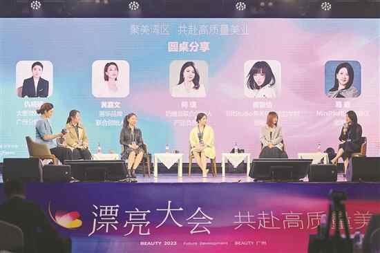 11月23日,由羊城晚报报业集团主办的“聚美湾区共赴高质量美业”2023漂亮大会在羊城创意产业园举办。在圆桌分享环节,来自不同领域、不同企业的负责人围绕当下美业痛点及可持续发展路径等话题进行探讨和交流,讲述各品牌在漂亮的赛道上如何打出差异化。