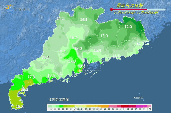 28日,西部市县晴间多云,中东部市县晴间少云。最低气温:粤北的北部市县11℃~15℃,南部沿海市县18℃~21℃,其余市县14℃~18℃。