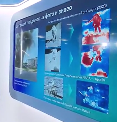据俄新社报道,普京在参观过程中了解了俄联邦储蓄银行识别假照片和假视频技术的情况,该银行数据研究部门负责人尼古拉·格拉西门科还在展览上向普京讲述使用谷歌公司神经网络(人工智能技术)的经历,当时该项技术分析了关于美国登月任务的照片。