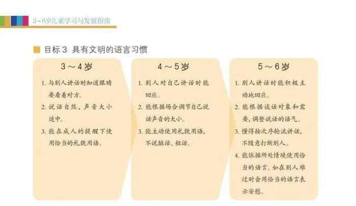 徐月仕的顾虑很有必要。记者注意到,这本《识字认读》的封面清楚标注了“根据教育部《3-6岁儿童学习与发展指南》编写”的字样。据教育部官网,该指南于2012年印发,其中内容明确提出要“为幼儿创设温暖、关爱、平等的家庭和集体生活氛围”及“让幼儿在积极健康的人际关系中获得安全感和信任感,发展自信和自尊”,并反复强调需引导幼儿在与他人交谈时使用恰当的礼貌用语。