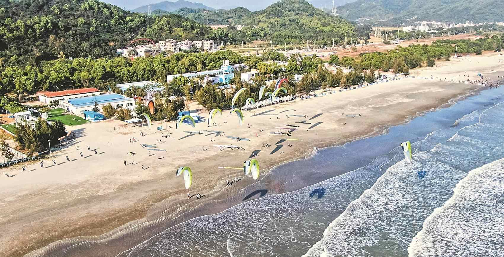 深汕特别合作区背靠莲花山脉、面向红海湾,36.8公里的赤石河穿城而过,海岸线长达69.8公里,海域面积1802.03平方公里,海水蔚蓝清澈,是各类山海运动举办的优选地。深汕特别合作区公共事业局相关工作人员表示,近来深汕接连举办“深汕杯”中国桨板俱乐部联赛总决赛、第三届广东省马术节暨第六届广东省马术联赛、深汕特别合作区青少年足球邀请赛等体育赛事,吸引了不少游客,持续擦亮深汕“体育+文旅”名片。