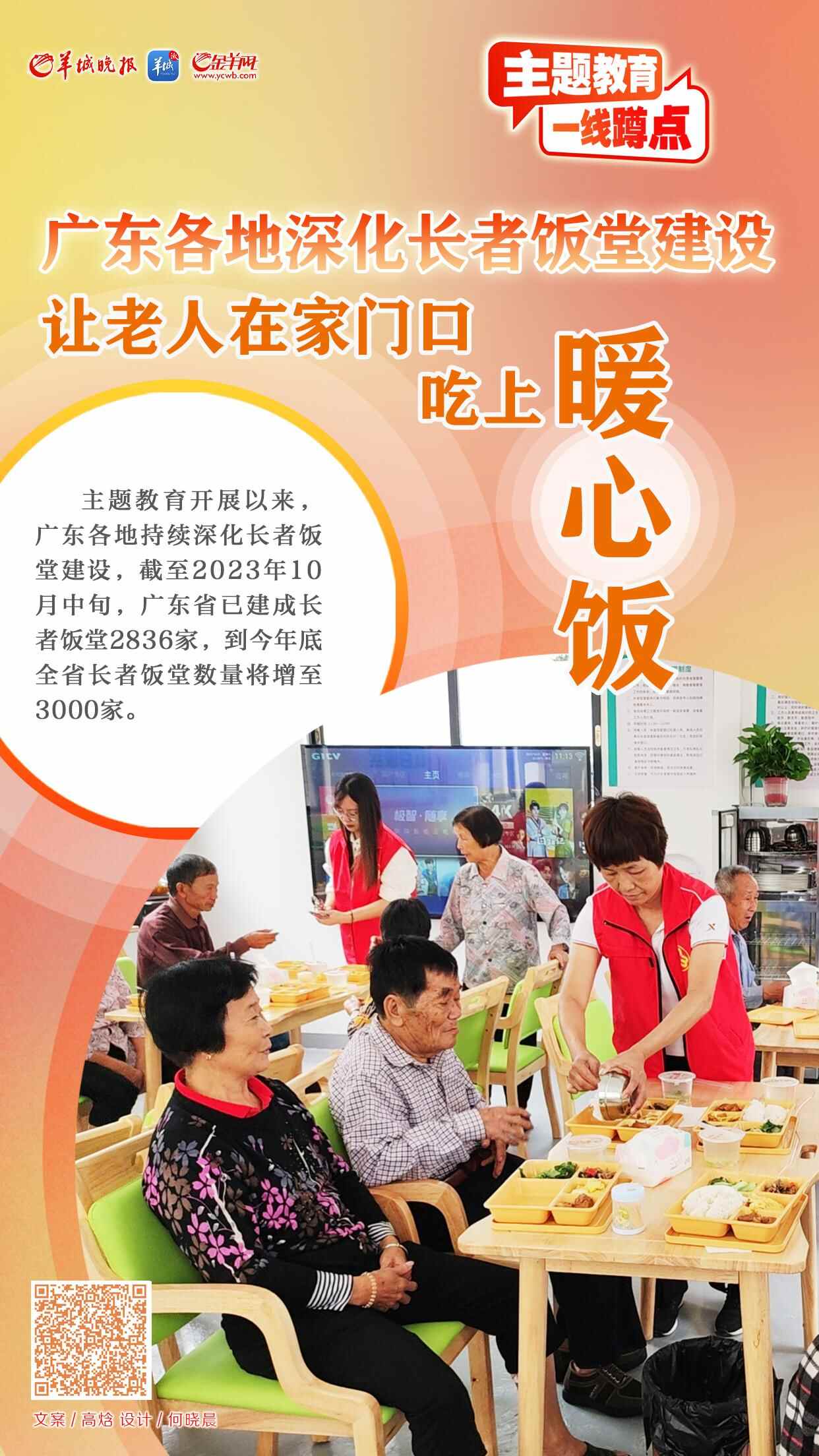 “着力解决人民群众急难愁盼问题”是此次主题教育的重要内容。主题教育开展以来,广东各地持续深化长者饭堂建设,截至今年10月中旬,广东省已建成长者饭堂2836家,到今年底全省长者饭堂数量将增至3000家。