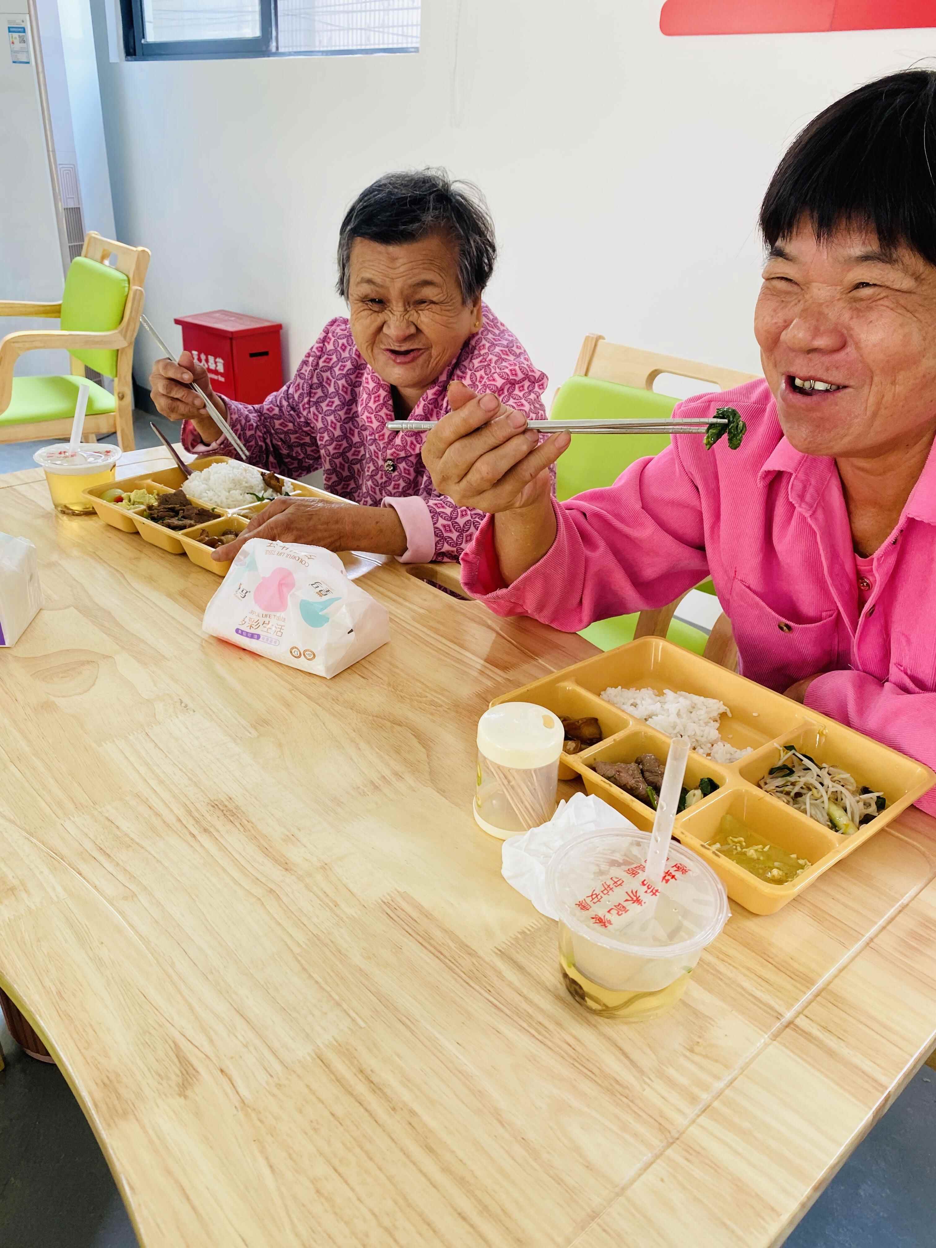 “工作人员们比我的子女对我还好。”林婆婆的孩子住在澄海县城,在没有长者饭堂时,她煮点稀饭、就点咸菜就是一顿午饭。如今,走几分钟就到长者饭堂,不仅吃得舒心,还有“一大家子”人在一起,热热闹闹的。