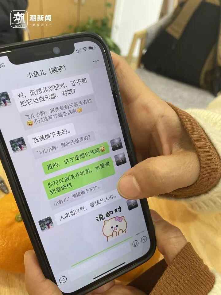 “明早又要洗衣服了。”他在微信里和黄丽娜叹气,“我妈妈还在时,都是用手洗的”。