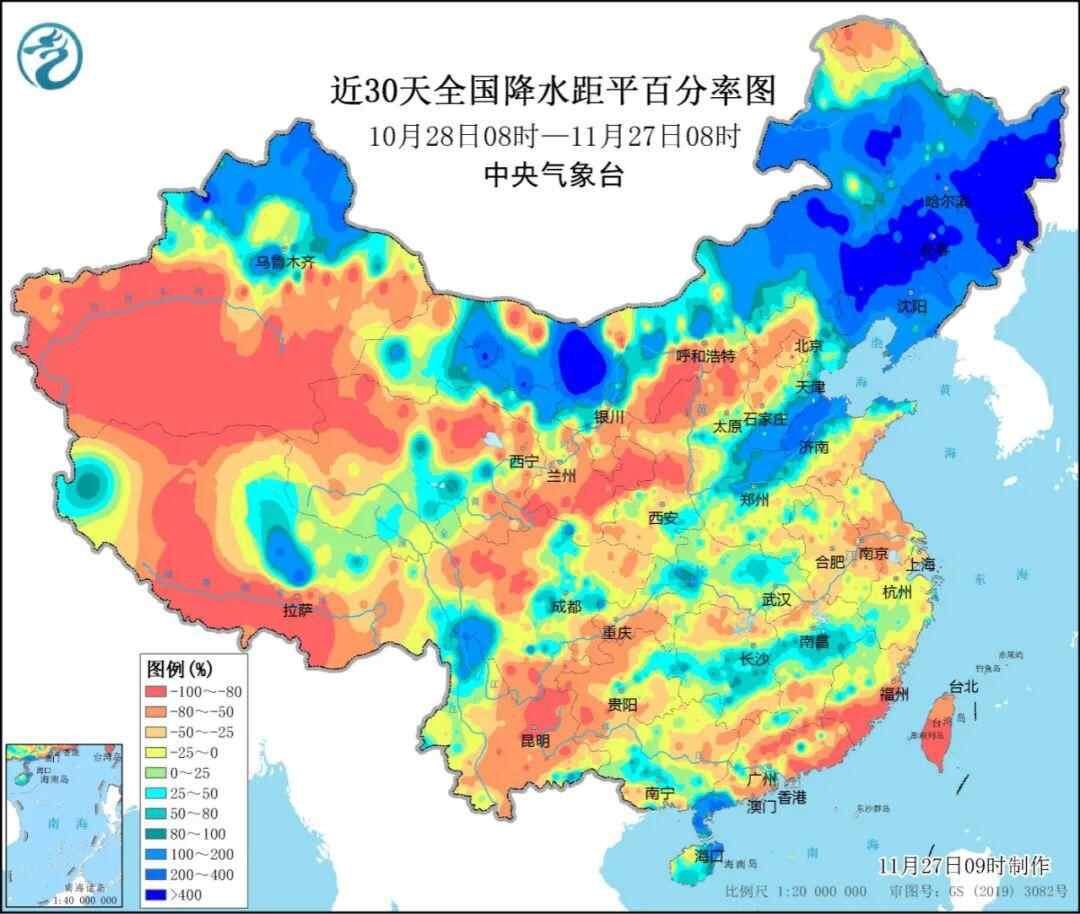 ↓今年11月以来哈尔滨、长春、沈阳降水量↓