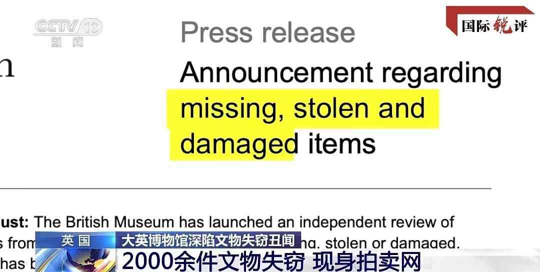 今年8月,大英博物馆被曝出约2000件馆藏珍品不翼而飞,有些甚至被挂在网上售卖。这让它陷入了信誉危机,“保护文物安全”的能力备受质疑。包括中国在内的多国再次呼吁英方归还文物。