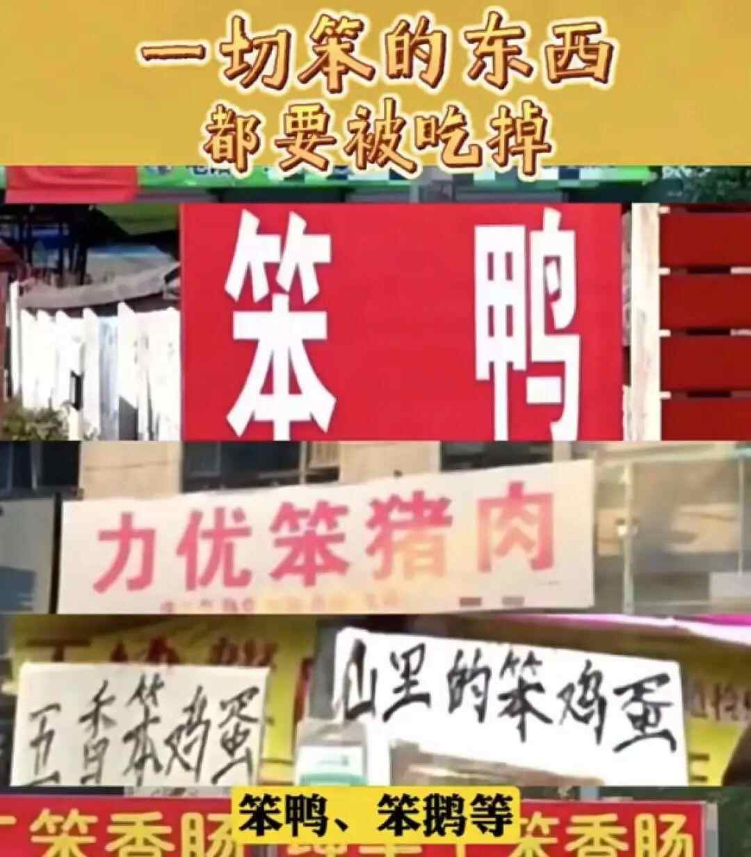 还有笨猪,路边店铺的店名就是“笨猪肉”,把“我家卖的是笨猪肉”明晃晃地写在了招牌上。