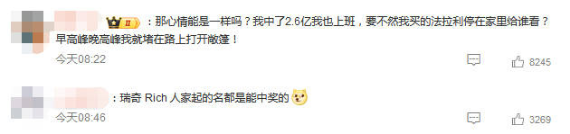 对此,有网友谈起了自己中2.6亿元会干什么,也有网友调侃该男子的名字一看就是能中奖的(谐音英文“rich”,意为富有)。