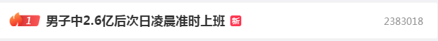 据港媒11月25日消息:加拿大一男子中5000万加币(人民币2.6亿元),次日凌晨4:30仍赶到公司上班,其称“公司需要我”。这条消息一度冲上微博热搜第一。