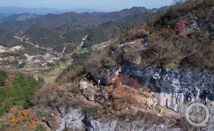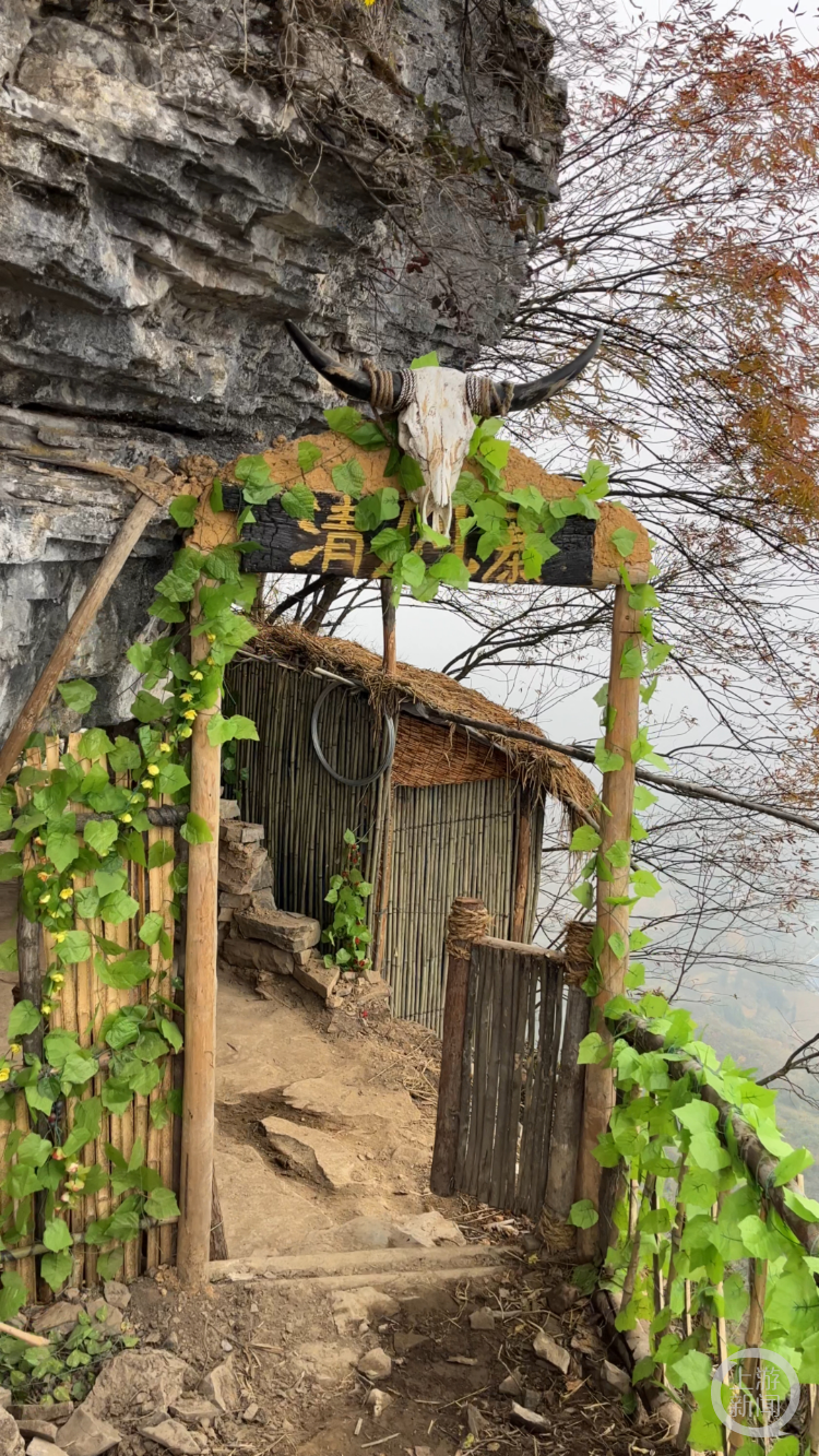 11月29日早上7点过,贵州铜仁万山区下溪乡,一处山坡悬崖边,21岁的文子在自己搭建的竹棚醒来。竹棚简易,却因装上红色灯笼和彩色隔帘,成为苍翠山色中的一抹亮色。