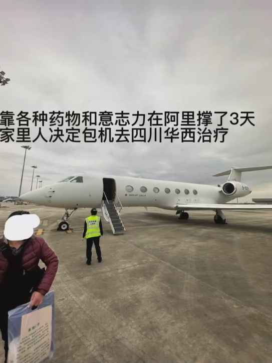 10月18日清晨, 机组与医疗团队自杭州萧山国际机场出发,从西藏阿里地区人民医院接到小余后,经过不到3小时飞行降落在成都双流机场,当晚小余即在华西医院完成各项检查。