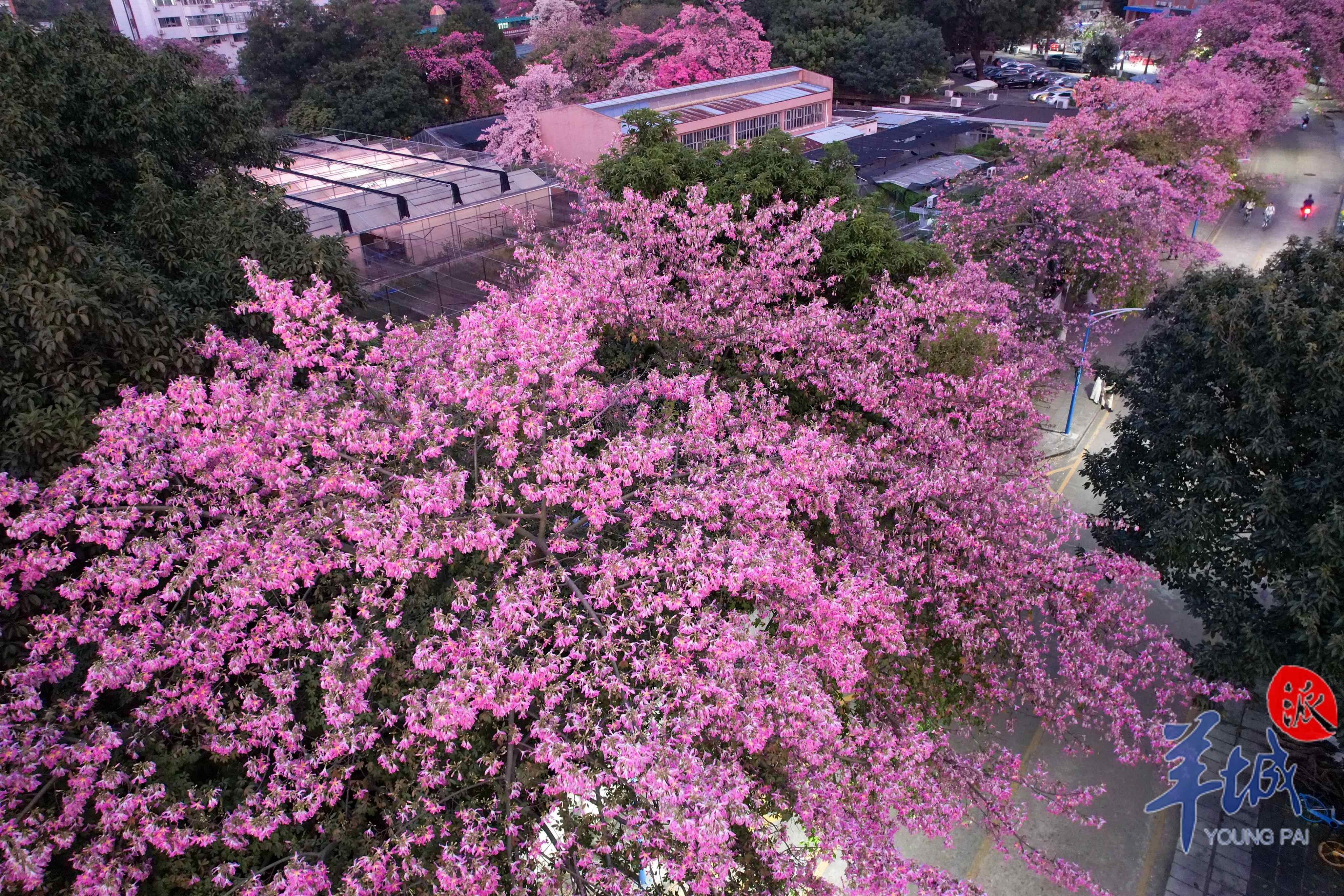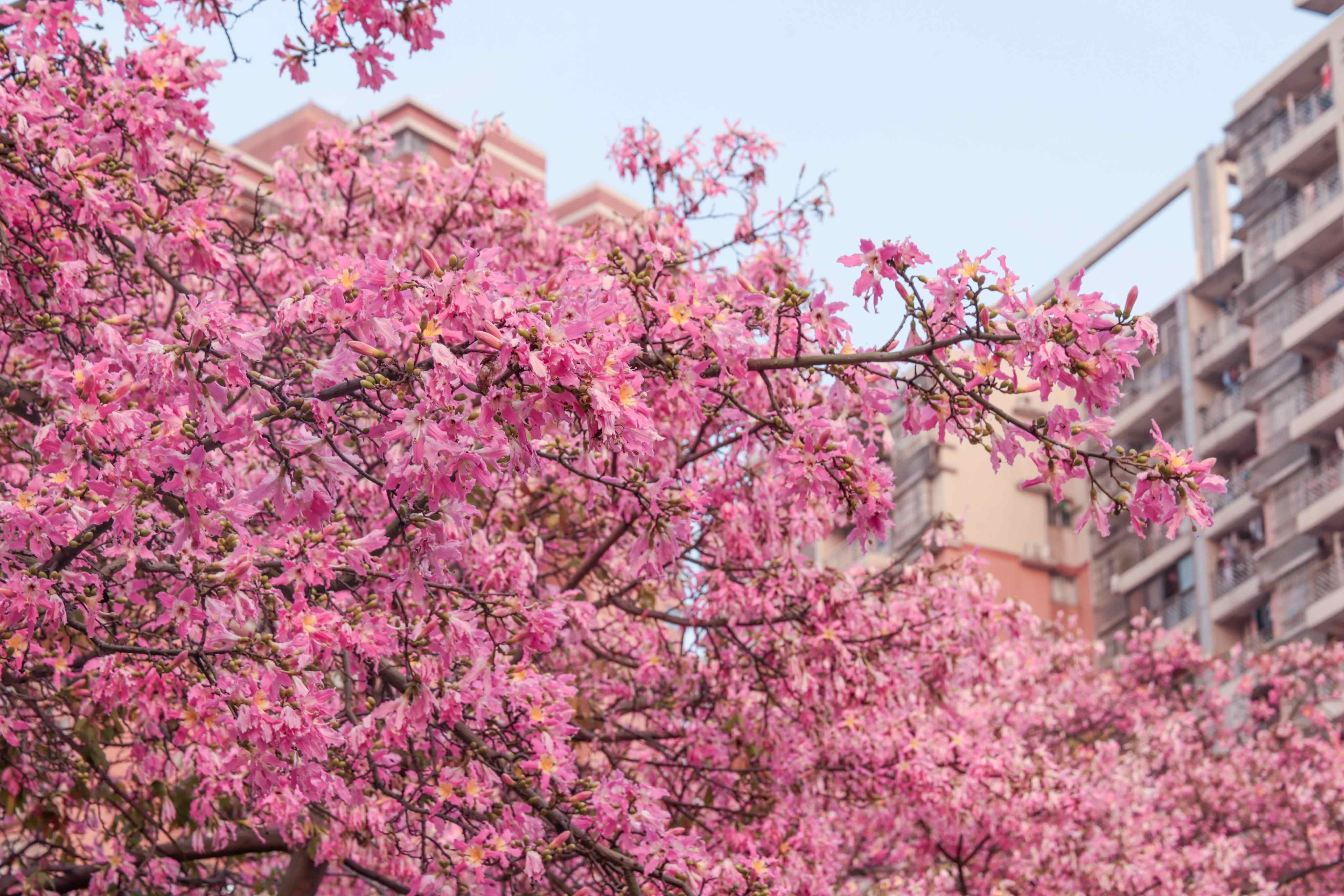 红花羊蹄甲形如羊蹄,花色紫红,有淡淡的皂香。它是杂交品种,很少结果,节省了处理果实的麻烦,成了道路绿化的优选。