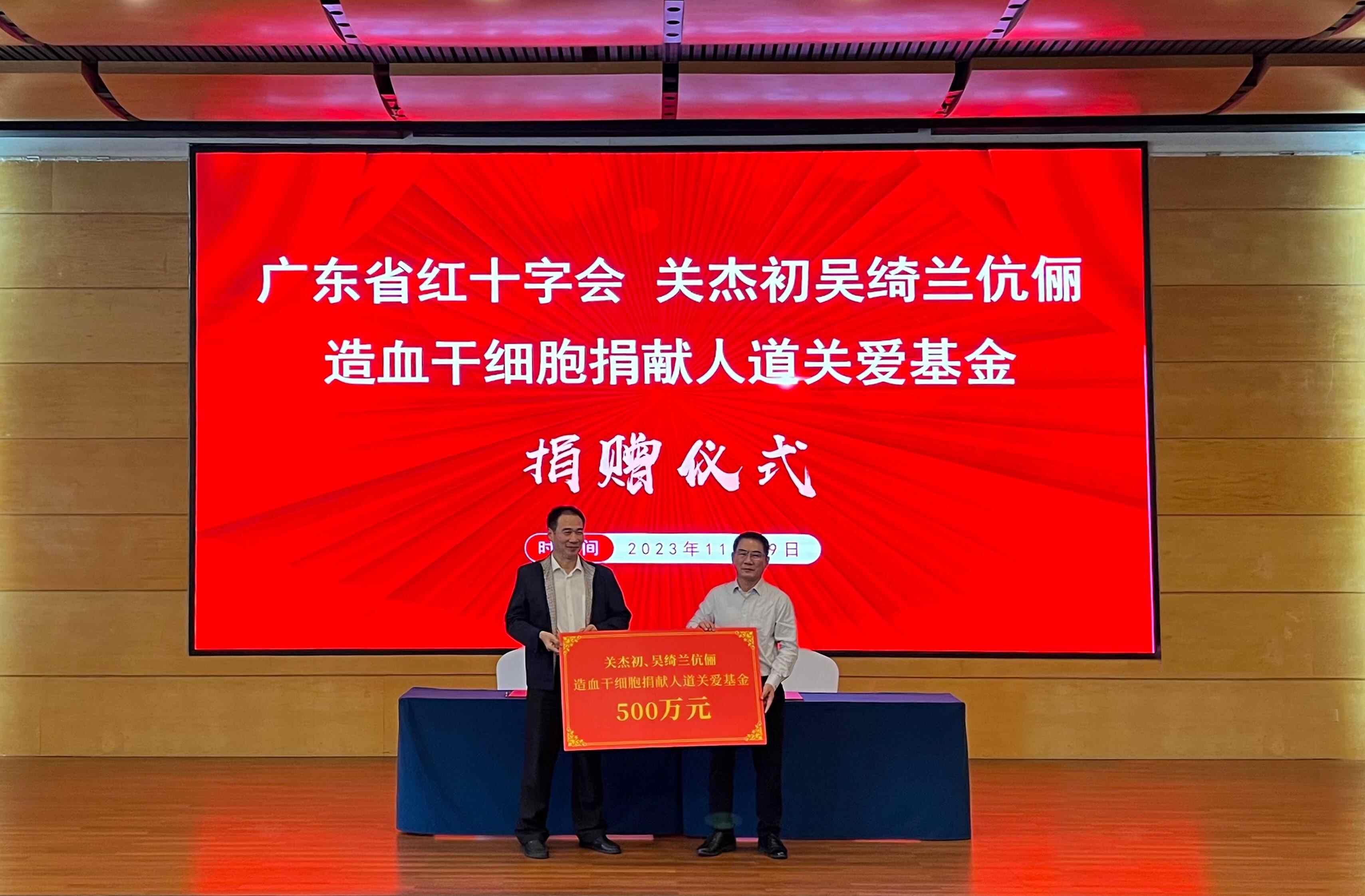 11月29日,“广东省红十字会关杰初、吴绮兰伉俪造血干细胞捐献人道关爱基金”捐赠仪式在珠海举行。关杰初、吴绮兰伉俪向广东省红十字会捐赠500万元,设立造血干细胞捐献者人道关爱基金,用于对广东省内造血干细胞捐献者的关怀慰问及困难救助,并宣传推广造血干细胞捐献事业。这也是全国首个关心关爱造血干细胞捐献者的省级专项基金。