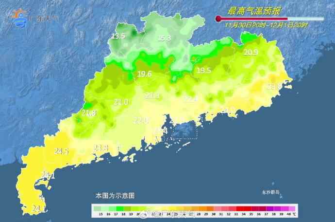12月2-3日,广东省大部多云到晴。最低气温:粤北和珠江三角洲北部市县9~12℃,南部沿海市县15~19℃,其余市县13~15℃。