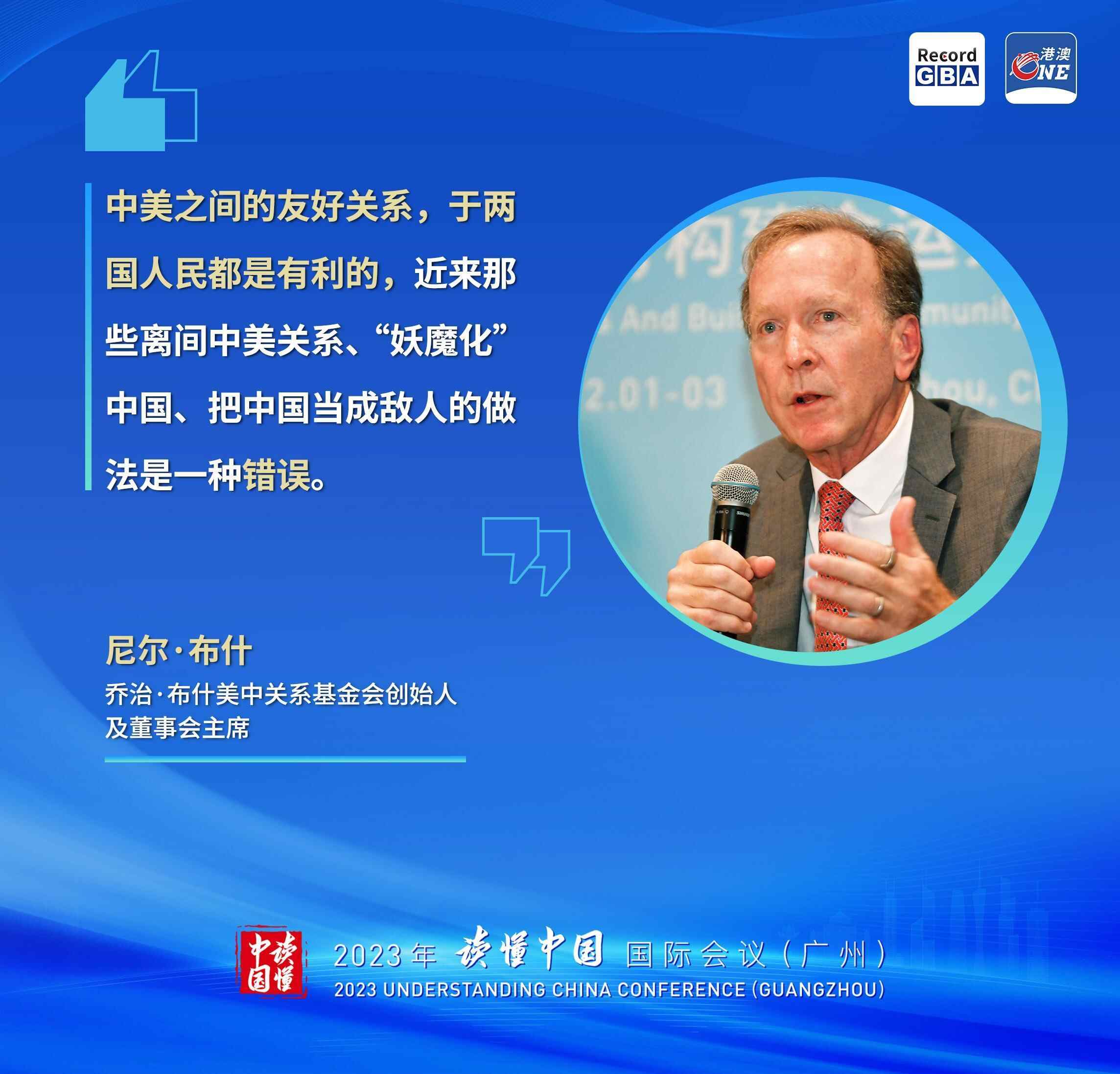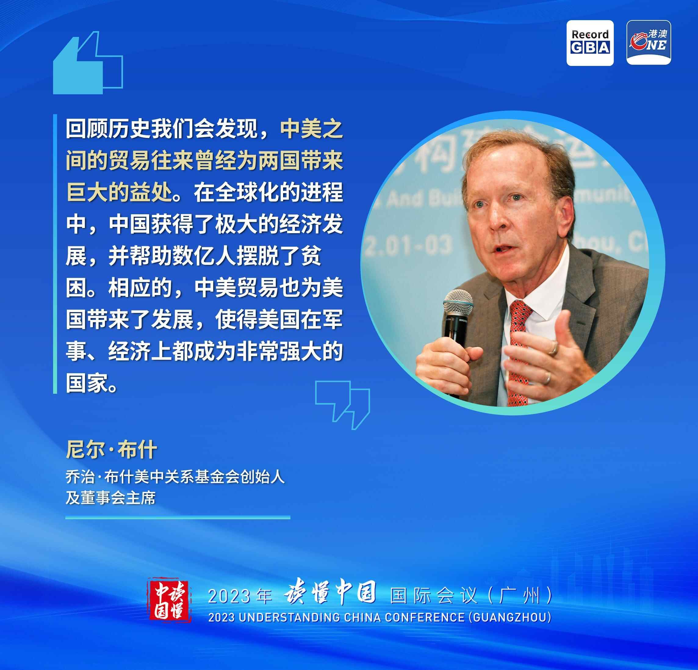 “回顾历史我们会发现,中美之间的贸易往来曾经为两国带来巨大的益处。”12月1日,在2023年“读懂中国”国际会议(广州)上,乔治·布什美中关系基金会创始人及董事会主席尼尔·布什表示,中美之间的友好关系,于两国人民都是有利的,近来那些离间中美关系、“妖魔化”中国、把中国当成敌人的做法,是一种错误。
