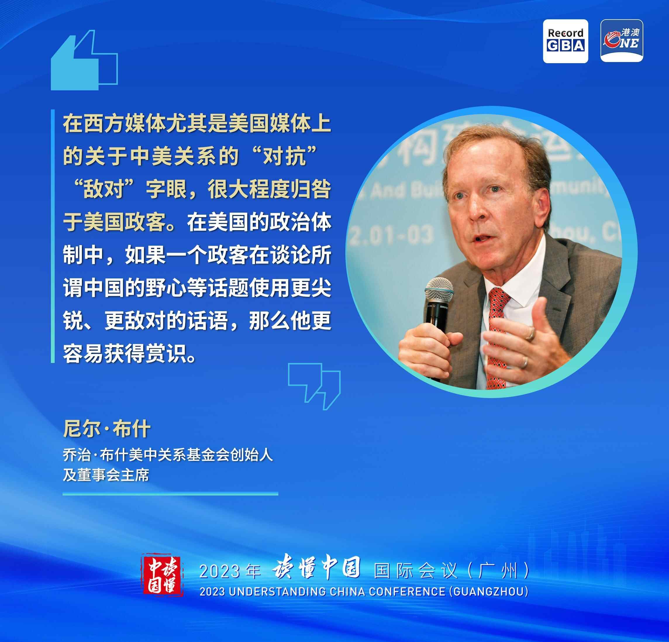 如今,西方媒体尤其是美国媒体上关于中美关系的描述,常出现“对抗”“敌对”等字眼。尼尔·布什坦言,这或许很大程度要归咎于美国政客。“在美国的政治体制中,如果一个政客在谈论所谓‘中国的野心’等话题时使用更尖锐的话语,那么他就更容易获得赏识。”