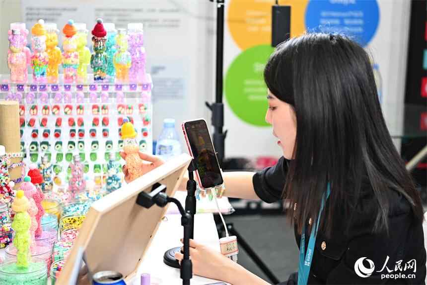 江西省赣州市南康区的赣州国际陆港,跨境电商卖家在进行直播带货。人民网 朱海鹏摄